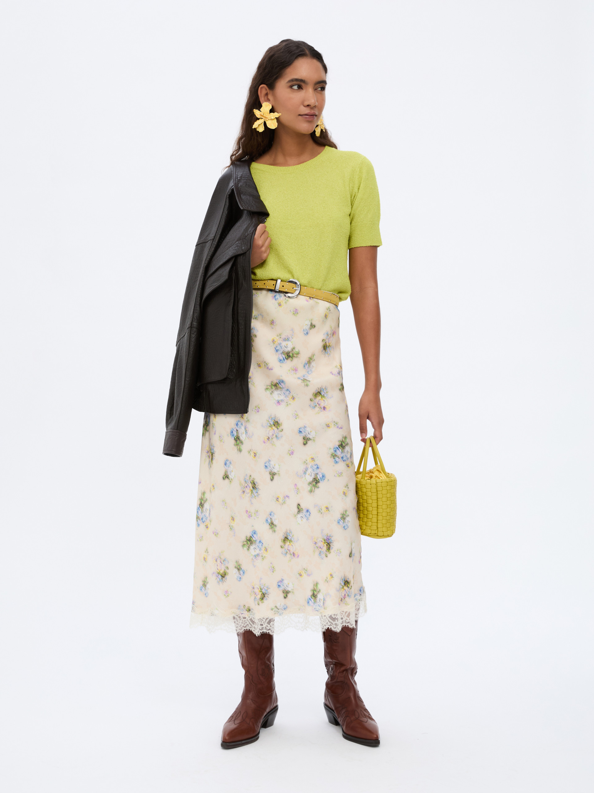 It effortlessly pairs with a cardigan or blazer. The garment is part of the iBLOOM project.